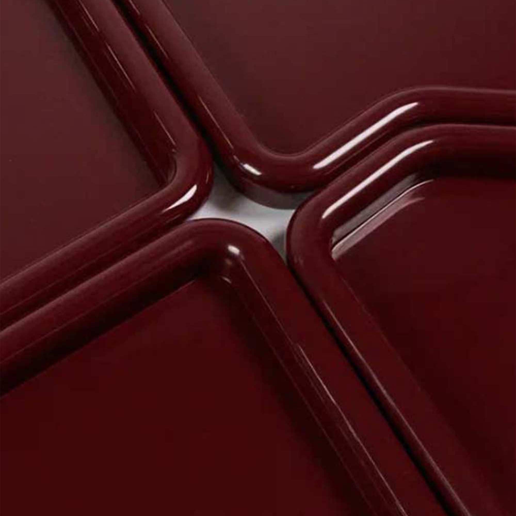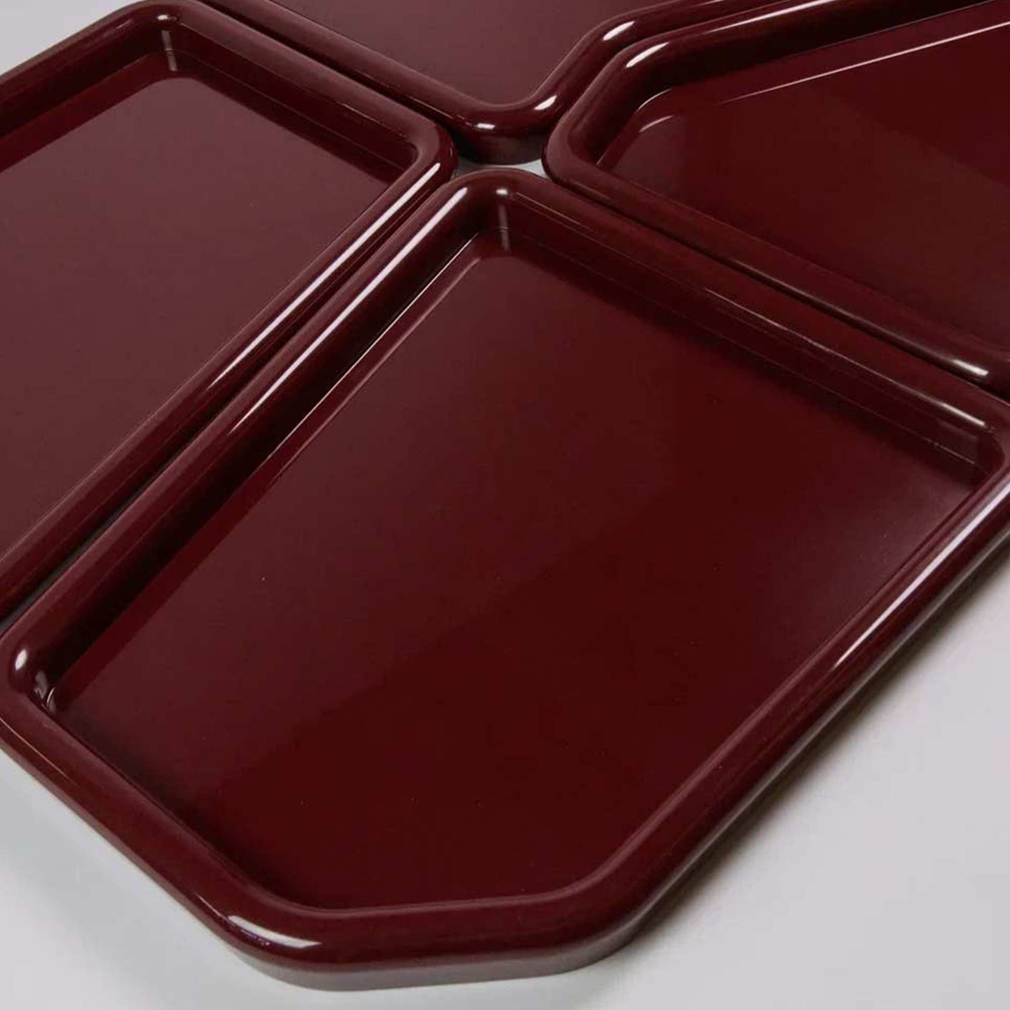 Богатое бордовое покрытие с глянцевым блеском придаёт каждому подносу ощущение глубины и утончённости. Тактильная гладкость и мягкость формы усиливают ощущение гармонии, которое заложено в смысл этой серии.
