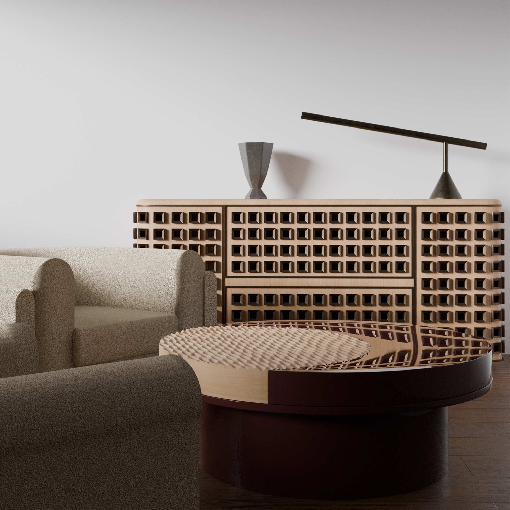 STARS выпускается в нескольких вариантах отделки: селективный шпон анегри или матовая эмаль на контрасте с глянцевым покрытием деталей. Это делает комод STARS выбором тех, кто ценит ремесленное искусство, надёжность и визуальную силу дизайна.