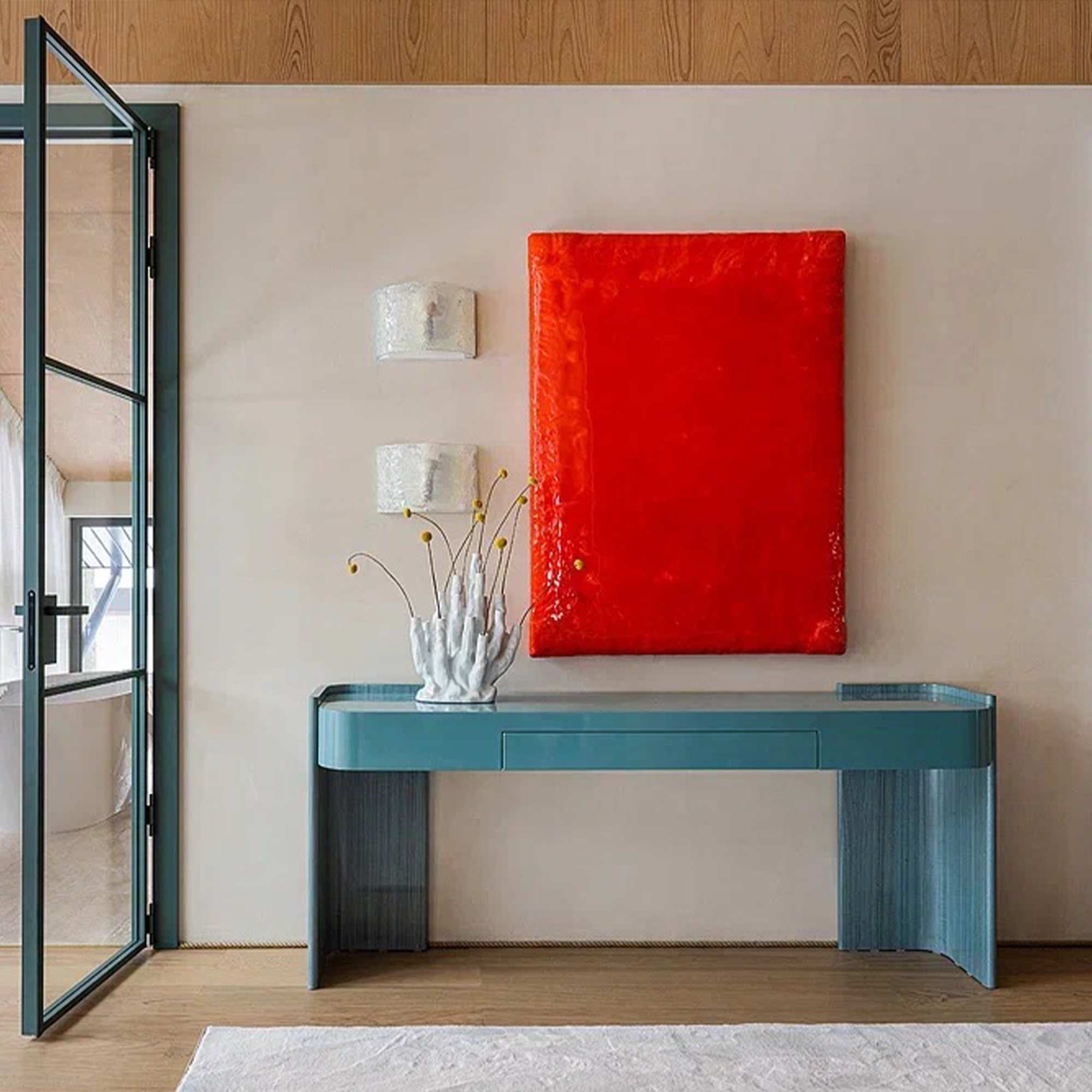 CLIP идеально подойдёт в качестве консоли в холл, гостиную или спальню. Её строгий, но мягкий дизайн позволяет использовать её как акцентный предмет мебели, не перегружая интерьер. Поверхность достаточно просторна для размещения декоративных объектов, книг, вазы или арт-объекта.Это дизайнерская вещь, говорящая о вкусе владельца. В ней ощущается баланс: между прямыми линиями и изгибами, сдержанностью и артистизмом. Консоль CLIP говорит тихо, но с достоинством.